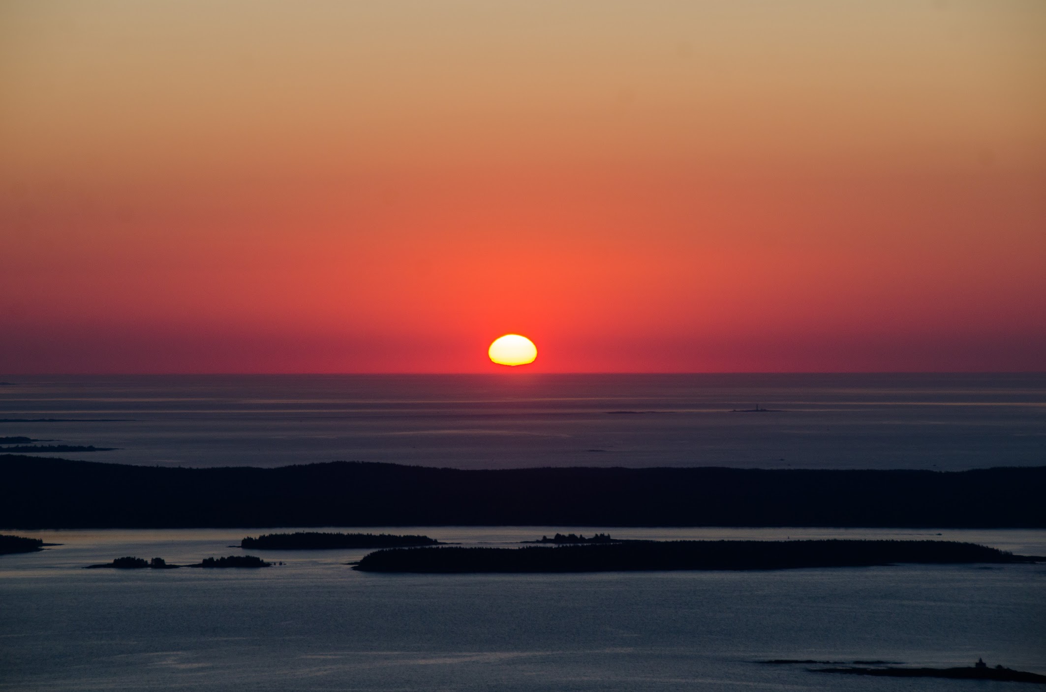 Cadillac Mountain is the highest peak on the Eastern Seaboard, and it’s the first place where the sun appears in the country. We thought we were pretty early, but the parking lot was already full, and cars were lined up along the road a mile down. Instead of going back down the mountain, we parked illegally and rushed to find our spot among the crowd.