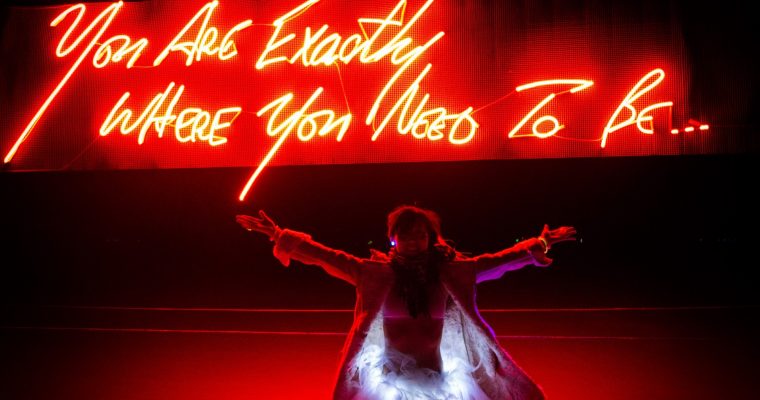 It was my second night at Burning Man. We got on our bikes and rode into the desert, visiting a few of the main artworks, then venturing into the darkness in search of a certain DJ. It seemed that we had been riding forever and further and further away from people, when we saw this neon sign in the middle of nowhere.