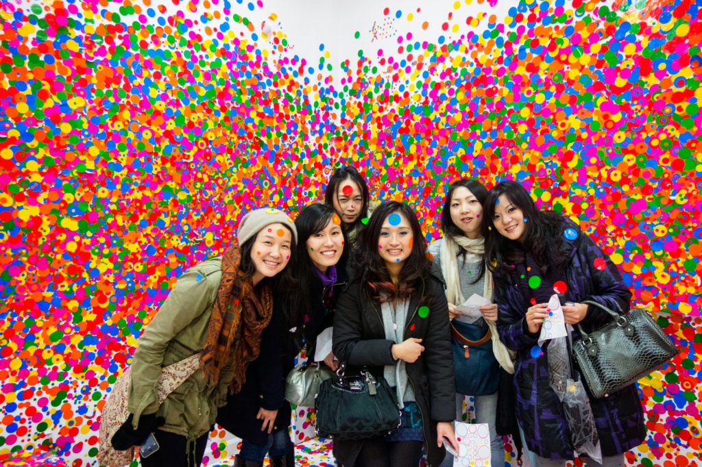 Having fun with friends in the sticker room at Kusama Yayoi's A Dream I Dreamed exhibit. She's now one of my favorite artists.