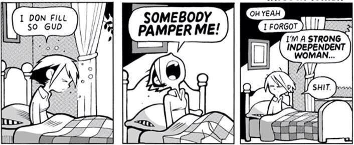 That's when I remembered this lovely comic strip. Oh yeah, that strong independent woman crap.