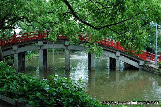 I love the quaint nature of Japanese foot bridges, generally shaped elegantly with a color that pops against the background.