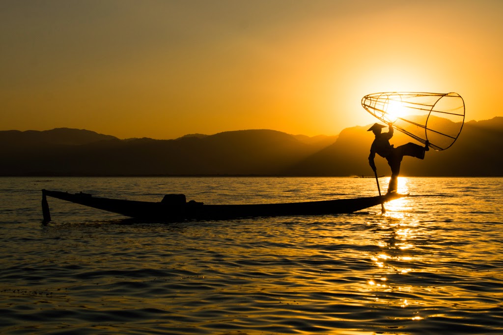 That photo everyone takes at Inle Lake, fisherman capturing the sun.