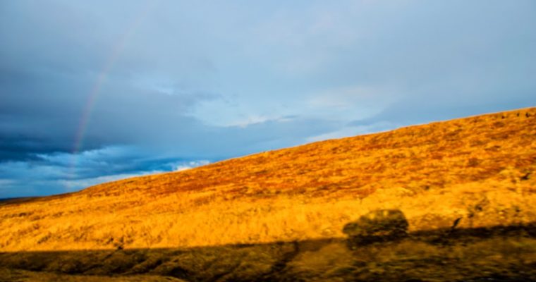 Shortly after the rain, trudging along the Icelandic coast in our tiny little car with a rainbow on the horizon.