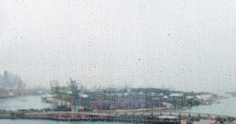 Overlooking the city on a rainy day, shot from the cable car on the way to Mount Faber.